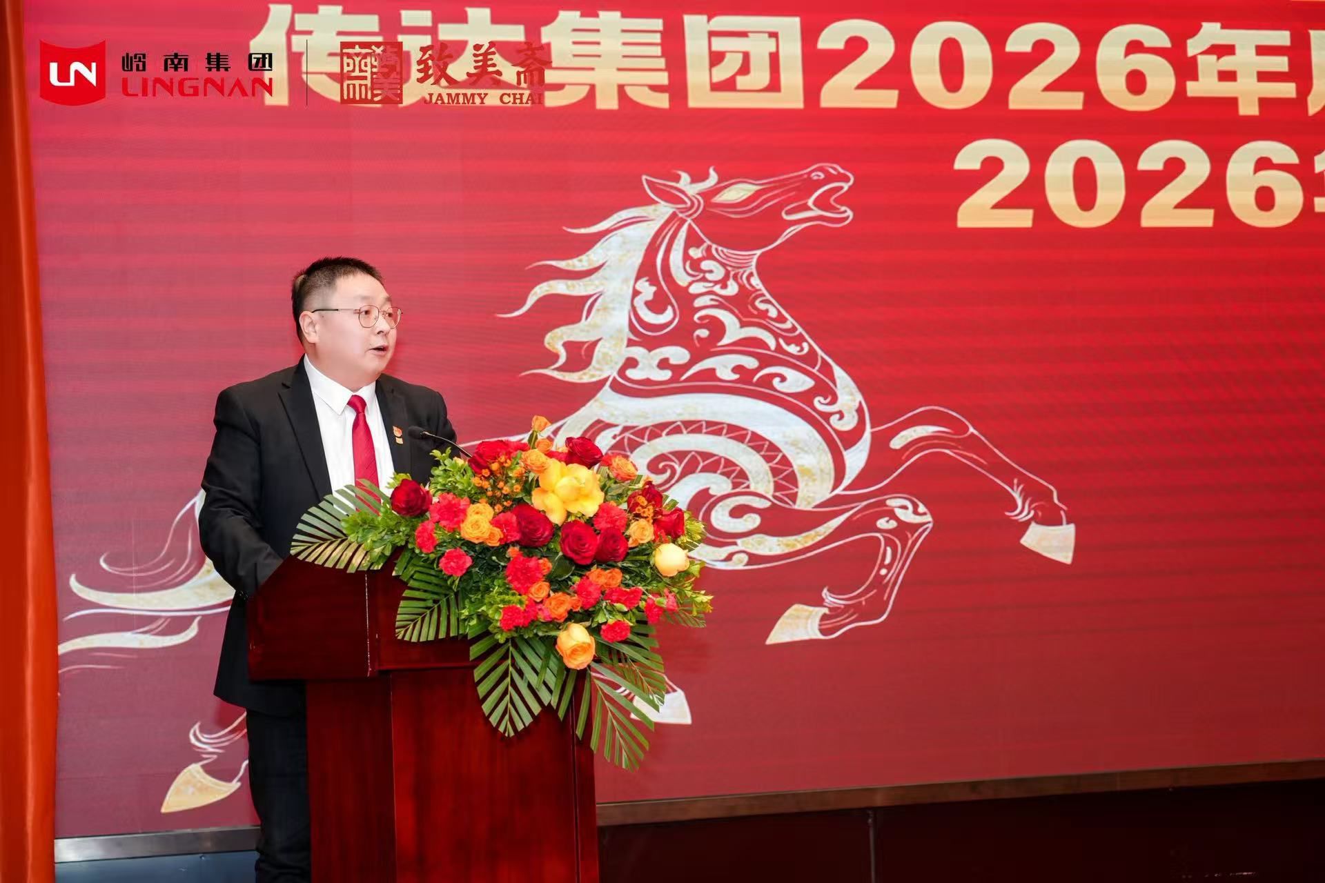 公司党委副书记、董事、工会主席庞宗飞主持会议,传达岭南集团2026年度党建与党风廉政建设工作会议精神并作2026年度公司党建与党风廉政建设工作报告;公司纪委书记陈立波作2026年度公司纪委推进全面从严治党监督工作报告暨警示教育专题报告;公司总经理戴中谊传达岭南集团2026年度工作会议精神并2026年工作报告;公司党委书记、董事长周晓炜作题为《以实干铸担当 以拼搏促发展 奋力谱写致美斋转型升级新篇章》的讲话。